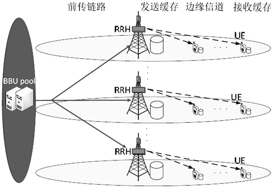 步骤1:根据内容分发组播应用中无线前传下行链路的具体特点,构建边缘缓存模型,提出基于分组最优缓存时间的分布式边缘缓存机制的具体实现方法;