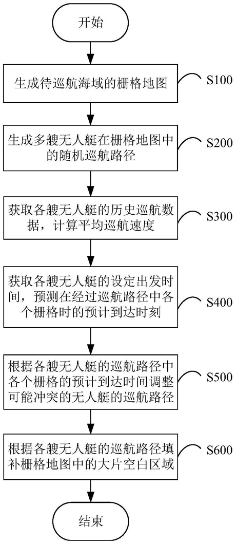 巡航路径生成模块,用于生成多艘无人艇在所述栅格地图中的随机巡航路径;