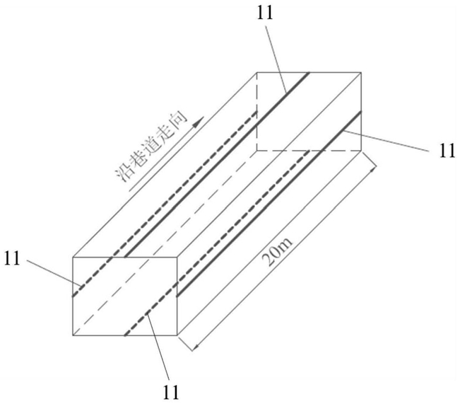 3.根据权利要求1所述的厚层复合顶板煤巷的协同锚固复式结构的建造方法,其特征在于,步骤一中,地质雷达探测前先选定厚层复合顶板煤巷的探测位置,并布置探测线;