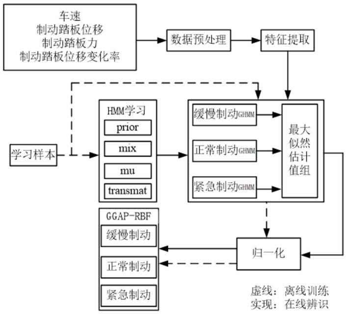 步骤4,通过GHMM/GGAP-RBF混合模型的输出值即可辨识出驾驶人的制动意图;