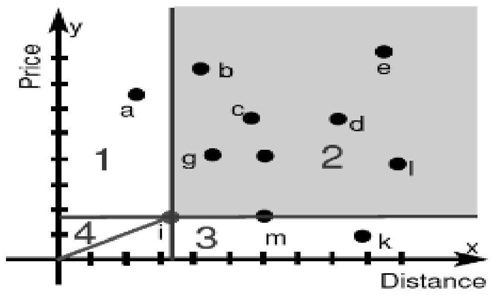 4.如权利要求1所述的海量数据下并行Skyline处理方法,其特征是,将数据集划分成4个区域,其中区域1和区域3的数据支配区域2和区域4,合并最终的计算区域,将区域1和区域3的数据点进行合并,通过Spark算子将Bitmap算法逻辑写入,计算区域1和区域3的最终Skyline point点。
