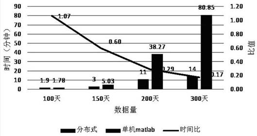 其中TA为所有数据集计算总时间,TP为系统进行并行调度的损耗时间,N为分布式数据集的数量,TD为每个数据文件的计算时间,ND为数据文件的数量M为计算队列数量,S为计算节点的数量,C为计算节点的CPU核心数;