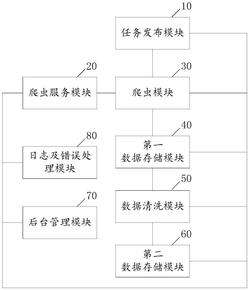爬虫模块,用于接收所述任务发布模块发布的爬虫任务,并依据所述爬虫任务,到所述爬虫服务模块中调用与所述爬虫任务对应的爬虫服务,利用所述爬虫服务到目标网站进行爬取动作,得到对应的原始爬虫数据;