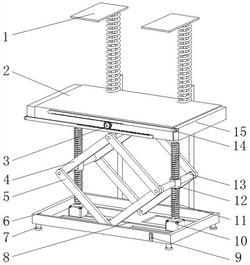 1.一种土木工程用整体式静载试验堆载平台,包括压板(1)、套管(2)和底框(6),其特征在于:所述底框(6)底端的四角皆安装有撑脚(7),且底框(6)的内侧设置有导槽(8),导槽(8)的内侧安装有电机(10),电机(10)的输出端安装有丝杆(11),丝杆(11)的外侧安装有螺母(12),螺母(12)的外侧安装有承重杆(13),承重杆(13)的两端安装有下导杆(5),下导杆(5)的顶端安装有上导杆(4),伸缩底框(6)的上方安装有套管(2),套管(2)内侧的两端皆安装有伸缩板(15),伸缩板(15)的一侧安装有齿条(14),齿条(14)的中间安装有齿轮(3),齿轮(3)的一侧设置有齿坑(21),所述套管(2)的一端安装有套环(17),套环(17)的内侧安装有标杆(16),所述套管(2)的顶端安装有弹簧(18),弹簧(18)的顶端安装有压板(1),且弹簧(18)内侧的底端安装有套筒(20),套筒(20)的顶端安装有伸缩杆(19),所述底框(6)的一侧安装有双向开关(9),双向开关(9)的输出端通过导线与电机(10)的输入端电连接。