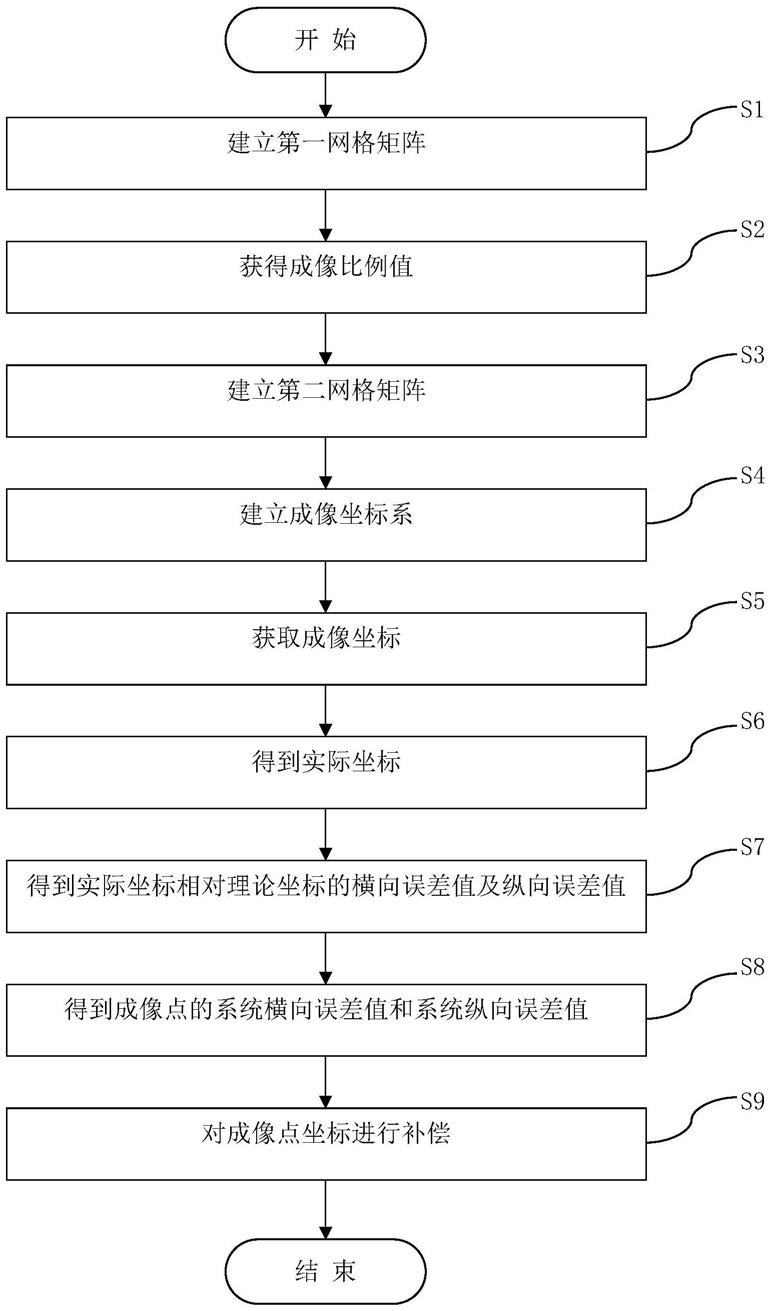 步骤S9:根据所述系统横向误差值和所述系统纵向误差值对所述成像点的坐标进行补偿。