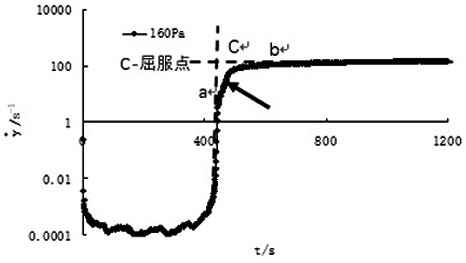 步骤九、画出步骤八所得剪切速率变化率随时间的变化曲线,曲线中明显的拐点即为W/O型含蜡原油乳状液的屈服点。