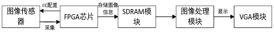 1.基于FPGA帧并行连通域筛选特征目标的图像处理方法,基于以下系统,该系统包括FPGA芯片、图像传感器、SDRAM模块、图像处理模块、VGA模块;FPGA芯片的信号端与图像传感器信号端双向连接,FPGA芯片的信号输出端与SDRAM模块的信号输入端连接,SDRAM模块的信号输出端与图像处理模块的信号输入端连接,图像处理模块的信号输出端与VGA模块的信号输入端连接;其特征在于该方法包括以下步骤:步骤(1)、滤波去噪: