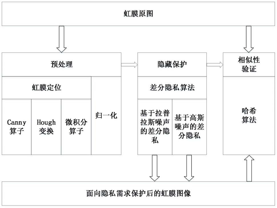 步骤(2):基于拉普拉斯分布噪声和高斯分布噪声机制的差分隐私算法实现虹膜生物特征隐藏;