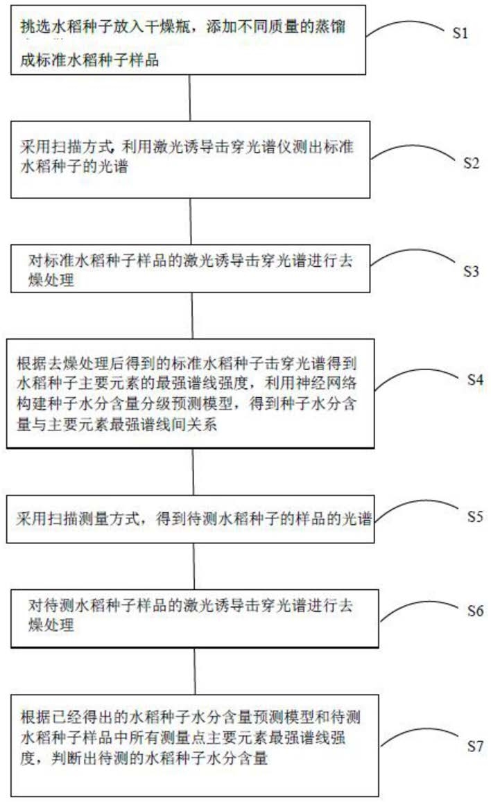 2.如权利要求1所述基于主要元素光谱强度的水稻种子水分含量分级检测方法,其特征在于,所述步骤S2中,测量的光谱范围,为250—800nm。