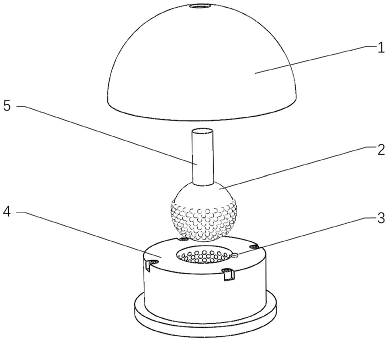 球窝顶面固定设有一个激光发射器;球窝的每个球形孔与球头位置对应的一个滚珠嵌合;