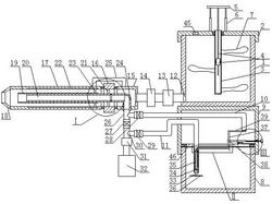 5.根据权利要求4所述的一种儿科呼吸道内科雾化给药装置,其特征在于:所述的密封盖(9)的右侧开设第二通孔(41),第二通孔(41)内通过密封轴承转动安装同轴的丝杆(42),丝杆(42)外周的左部螺纹安装同轴的小内螺纹管(43),小内螺纹管(43)的左端与第二轴座(38)固定连接,小内螺纹管(43)固定连接伸缩杆(44)的一端,伸缩杆(44)的另一端与密封盖(9)固定连接。
