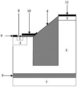 1.一种具有梯形氧化槽的绝缘层上硅LDMOS晶体管,包括衬底层、全埋氧层、硅膜层和器件顶层;衬底层设置在最底部,掺杂类型为P型,掺杂材料为硅材料;衬底层上面为全埋氧层,全埋氧层采用二氧化硅,全埋氧层上面为硅膜层;其特征在于:所述的硅膜层包括源区、硅体、漂移区、梯形氧化槽和漏区;所述的漂移区设置在全埋氧层上方;硅体和漏区分设在漂移区两侧,硅体呈凹形,所述的源区设置在硅体的凹形区域内;硅体的底面以及朝内的那个外侧面均与漂移区外侧贴合设置;漏区的底面与漂移区顶面重合;所述的梯形氧化槽设置在漂移区的凹槽内;梯形氧化槽靠近硅体的侧面与漂移区靠近硅体的内侧面对齐;梯形氧化槽远离硅体的侧面与漂移区远离硅体的内侧面以及漏区朝内的侧面均对齐,且梯形氧化槽远离硅体的侧面最高点与漏区的最高点等高;梯形氧化槽的底面与漂移区的凹槽底面重合;梯形氧化槽的顶面为斜面,且斜面靠近硅体的一侧较低;源区顶面与硅体顶面、梯形氧化槽靠近硅体的侧面最高点以及漂移区靠近硅体一侧的顶面对齐设置;梯形氧化槽采用二氧化硅材料,源区、硅体、漂移区和漏区均为硅材料;源区和漂移区之间的硅体形成器件沟道;硅体掺杂类型为P型;源区、漂移区和漏区的掺杂类型均为N型;所述的器件顶层包括栅氧化层、源电极、栅电极和漏电极;所述的栅氧化层位于器件沟道上方,并延伸到与梯形氧化槽上表面贴合;栅氧化层采用二氧化硅材料;所述的栅电极完全覆盖栅氧化层,并且栅电极延伸到与梯形氧化槽上表面贴合;所述的源电极位于源区上方,且与栅氧化层之间设有间距;所述的漏电极位于漏区上方;