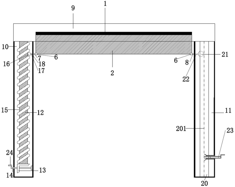 侧部围护件(2)的下部设置有支撑轴(6),支撑轴(6)的两端分别固定有万向铰接件I(7)和固定件(8);