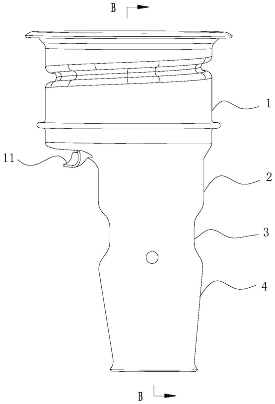 其特征在于:所述第二管体(2)的底部连接有第三管体(3),所述第三管体(3)的底部连接有第四管体(4);
