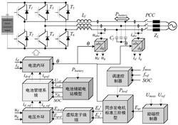 电压外环控制dq轴电压参考值与实际值的偏差以及电流内环控制电流参考值与实际值的偏差,修正电池储能电站并网逆变器的占空比,结合并网逆变器功角θ控制逆变器中晶闸管开关特性。