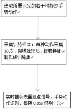 所述基于表面肌电信号的手势动作在线识别方法,包括以下步骤:步骤一,选取所要识别的若干种静态手势动作;