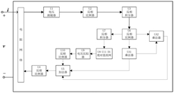 2引脚,其第3引脚连接电压为1V的电源,第6引脚通过第十六电阻R20连接第三反相比例器U10的第2引脚,第4引脚接电源VEE,第7引脚接电源VCC,第1引脚和第8引脚悬空;第三反相比例器U10的第2引脚通过第二十电阻R20、第二十一电阻R21和第二十二电阻R22分别连接反相比较器U9的第6引脚、电压为12V的电源和第三反相比例器U10的第6引脚,其第6引脚还通过第五电阻R5连接反相加法器的第2引脚,第3引脚接地,第4引脚接电源VEE,第7引脚接电源VCC,第1引脚和第8引脚悬空;反相加法器U5的第2引脚通过第五电阻R5、第六电阻R6、第七电阻R7和第八电阻R8分别连接第一乘法器UA1的W引脚,第二乘法器UA2的W引脚、第三反相比例器U10的第6引脚和其自身的第6引脚,同时其第6引脚还通过第九电阻R9连接第四反相比例器U4的第2引脚;第3引脚接地,第4引脚接电源VEE,第7引脚接电源VCC,第1引脚和第8引脚悬空;第四反相比例器U4的第2引脚通过第十电阻R10和第九电阻R9分别连接第一反相比例器U2的第6引脚和反相加法器的第6引脚,同时其第6引脚还通过第一电阻R12和第十一电阻R11分别连接电阻网络的输入端和其自身的第2引脚,第3引脚接地,第4引脚接电源VEE,第7引脚接电源VCC,第1引脚和第8引脚悬空。