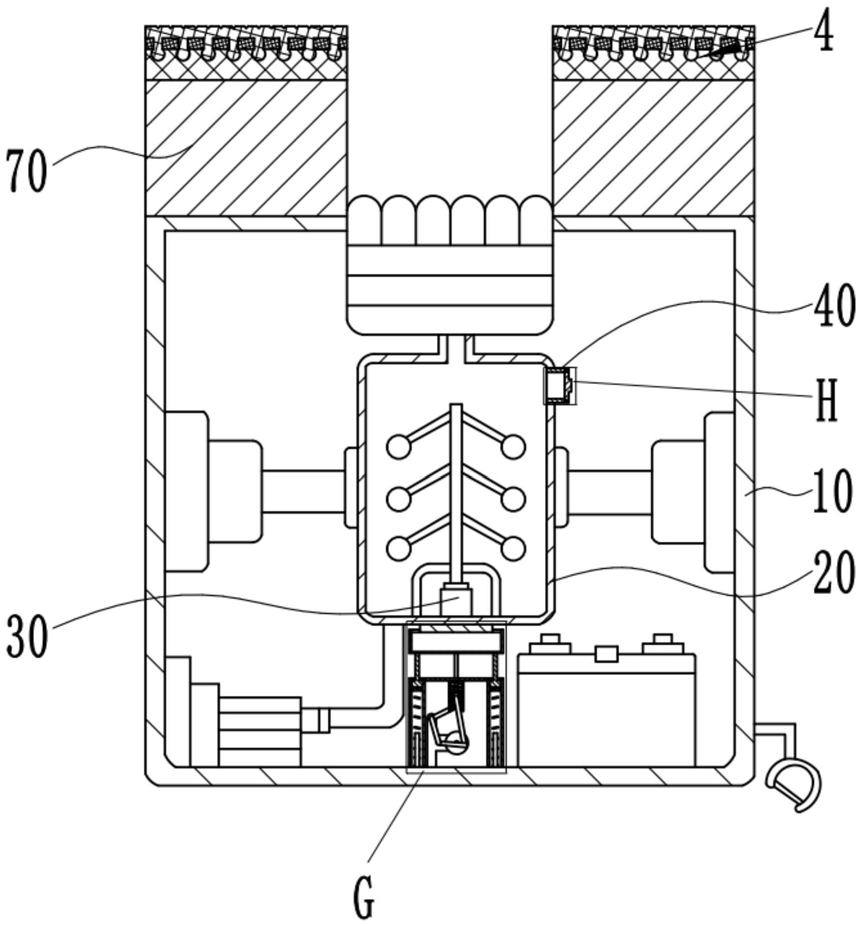 联动组件(22),所述联动组件(22)的一端与位于所述移动壳(1)底端的连接杆(12)相连,所述联动组件(22)的另一端与位于所述壳体(10)内底壁上的安装板(102)相连,且所述联动组件(22)位于一对筒体(101)之间。