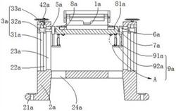 所述第一调节组件(4a)包括调节杆(41a),所述调节杆(41a)的底部与所述固定架(2a)且位于所述调节槽(22a)内壁的底部转动连接,并且调节杆(41a)的顶部贯穿所述固定架(2a)且位于所述调节槽(22a)内壁的顶部且延伸至所述固定架(2a)的顶部,所述调节杆(41a)延伸至所述固定架(2a)顶部的一端固定连接有调节盘(42a);