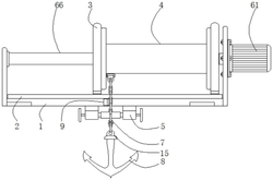 6.根据权利要求5所述的具有自动锁定功能的船舶抛锚装置,其特征在于,所述丝杆(63)的一端螺纹连接有内螺纹管(66),所述内螺纹管(66)的一端与所述固定架(1)内表面的左侧固定连接。