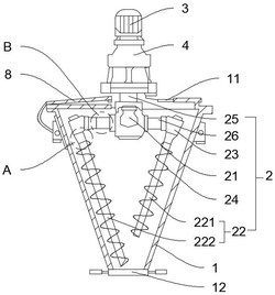 9.根据权利要求1所述的航天耐磨电缆绝缘层加工用混料设备,其特征在于,所述转轴(22)包括第一转轴(221)和第二转轴(222),所述第一转轴(221)的长度小于所述第二转轴(222)的长度。