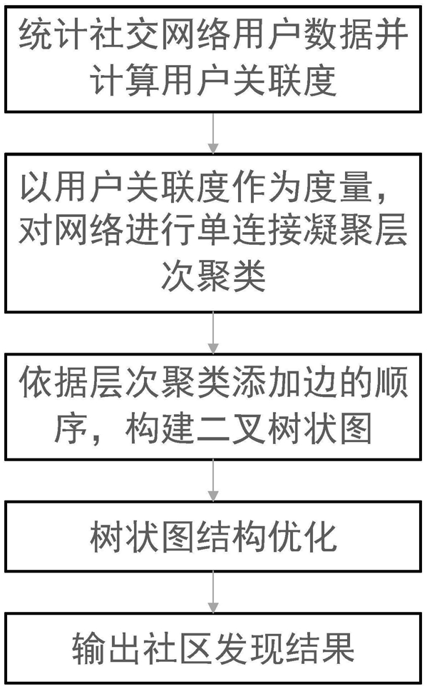 1.一种基于层次聚类的社交网络多尺度结构挖掘方法,其特征在于,包括以下步骤:S1:计算机对社交网络用户交互数据进行统计,以用户为点,构成网络G=