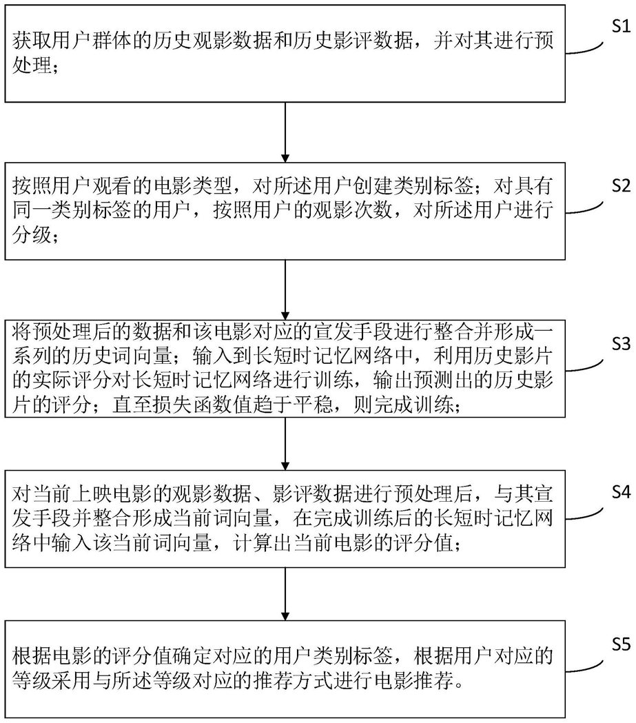 S5、根据电影的评分值确定对应的用户类别标签,根据用户对应的等级采用与所述等级对应的推荐方式进行电影推荐。