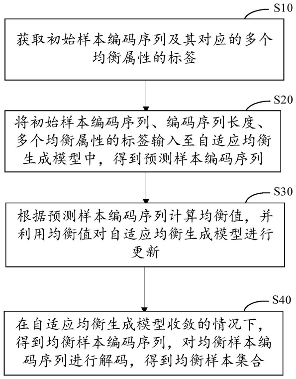 预测样本生成模块,用于将所述初始样本编码序列、编码序列长度、所述多个均衡属性的标签输入至自适应均衡生成模型中,得到预测样本编码序列;
