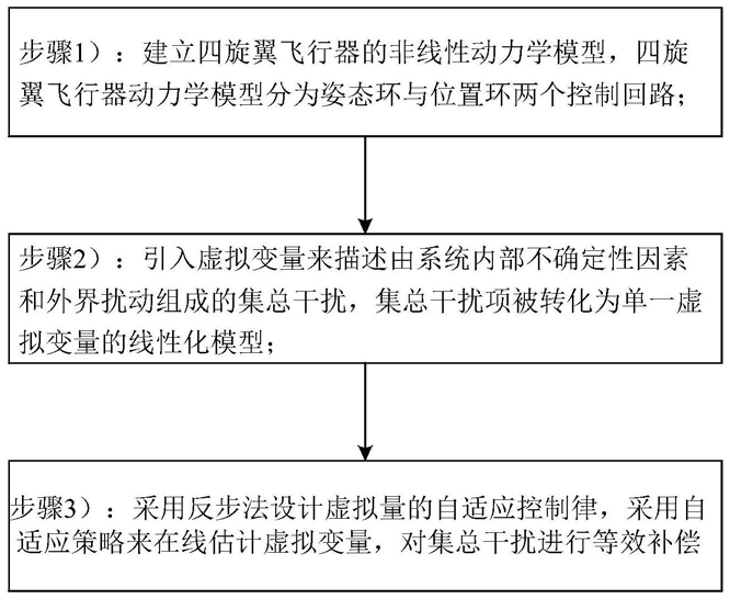 1.一种四旋翼飞行器的全局鲁棒自适应轨迹跟踪控制方法,其特征在于,其步骤包括:步骤1):建立四旋翼飞行器的非线性动力学模型,四旋翼飞行器动力学模型分为姿态环与位置环两个控制回路;