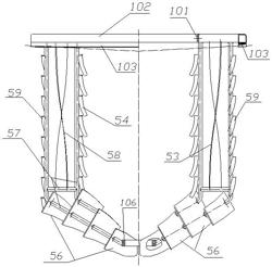 1.一种自动灌馅包丸机的搅拌片架结构的工作方法,包括搅拌片架,其特征在于所述搅拌片架由幅轮式传动盘、骨架、定位在浆料桶和馅料桶锥面段骨架上的泵浆蜗壳片组成,所述幅轮式传动盘由两根以上的传动盘幅杆、上外环、上滑环、齿圈组成,上外环和上滑环同心通过传动盘幅杆固定成一个完整的幅轮式传动盘,幅轮式传动盘上外环的下面定位有一齿圈,齿圈与上滑环同心,所述齿圈与浆料桶上部的两个拌浆伞形齿轮和数个撑托伞形齿轮紧密啮合,所述骨架为靠近浆料桶内壁和靠近馅料桶外壁的两根互为平行的结构设有两组以上,每一组骨架的上端定位在传动盘幅杆的下面,对应的传动盘幅杆也设有两根以上,每一组骨架在浆料桶倒锥段定位有数片泵浆蜗壳片,泵浆蜗壳片下抵浆料桶倒锥面上抵馅料桶倒锥面,以用于将浆料强行泵出浆料桶出口,靠近浆料桶内壁骨架的锥面段下端头连接下定心滑环、下定心滑环套装在馅桶出口定心圈上,每组两竖直平行的骨架间分别设有正反拌浆片,整个搅拌片架结构通过幅轮式传动盘的上滑环和下定心滑环分别套装限定在馅料桶外壁的定心衬环和馅料桶出口处的馅桶出口定心圈上;