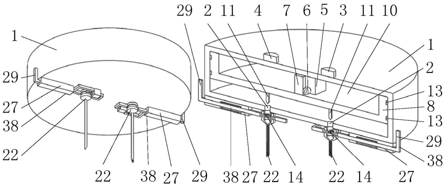 2.根据权利要求1所述的一种畜牧业使用的注射装置,其特征在于:上述壳体为圆柱形;壳体的高度与壳体的直径比小于1:5。