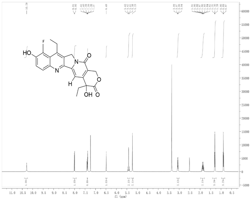 3.如权利要求1所述的方法,其特征在于所述分离纯化方法如下:反应混合物中加入饱和NaCl水溶液,用二乙酸乙酯烷萃取,取有机层经过无水硫酸钠干燥、过滤、常温下旋转蒸除溶剂,即得粗品;将粗品进行硅胶柱层析,以乙酸乙酯和石油醚的体积比为1:10的溶液为流动相,TLC跟踪收集Rf值为0.3~0.5的洗脱液,收集得到的洗脱液经减压除去溶剂,干燥,得到式(I)所示氟化喜树碱药物衍生物。