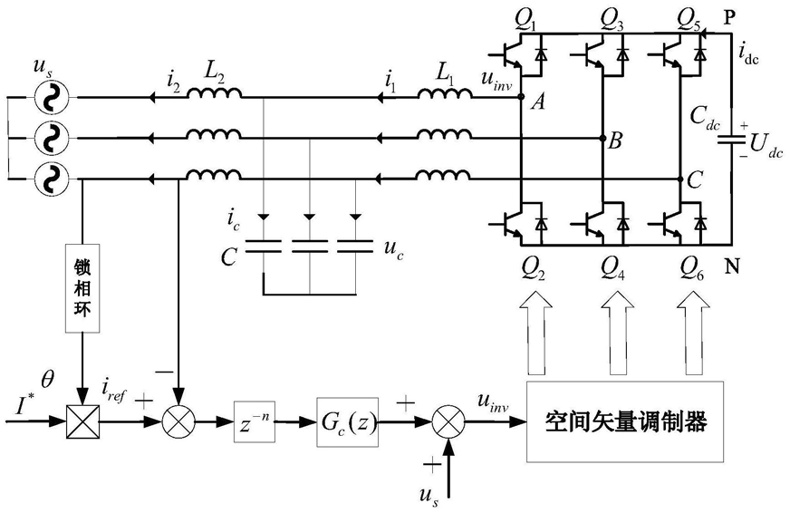2.如权利要求1所述的一种适用于LCL型并网逆变器的网侧单环延时反馈控制方法,其特征在于,所述的网侧单环延时反馈控制方法的z域下的闭环传递函数 为:其中Gc(z)为电流控制器,采用PI控制,对基波有较好的追踪能力, 为网侧开环传递函数,z-n为延迟环节。
