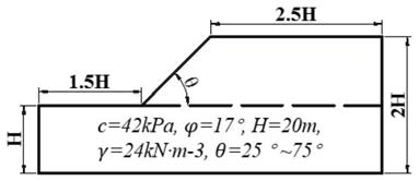 其中,c和 分别代表边坡初始粘聚力和内摩擦角,c 和 分别代表边坡临界粘聚力和内摩擦角,Fs为边坡安全系数。