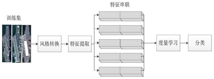 1.基于关系网络的复杂场景下遥感图像小样本目标识别方法,其特征在于,该方法具体包括以下步骤:步骤(1)、对遥感舰船影像进行风格迁移
