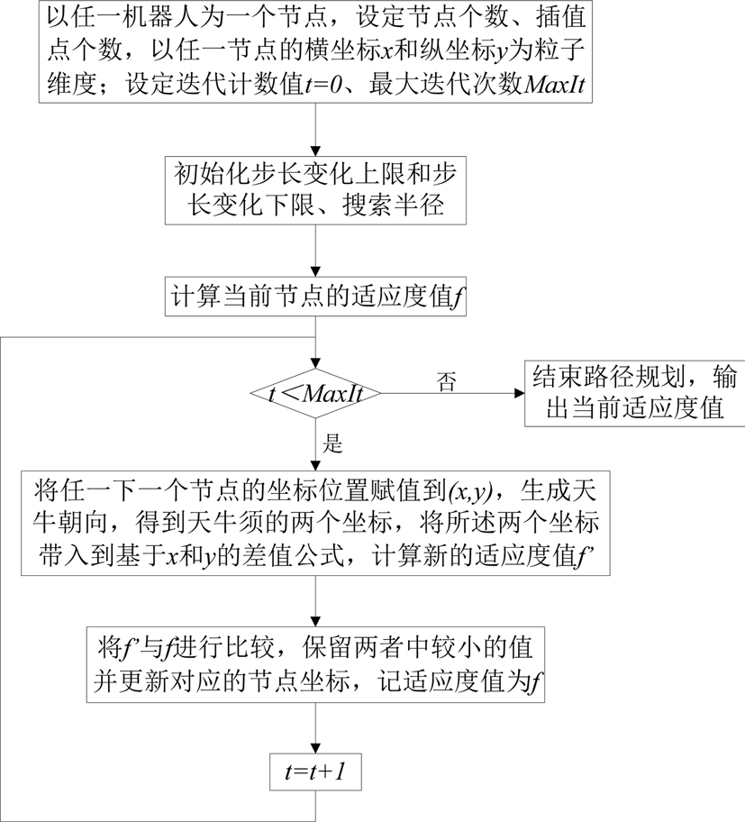 步骤4:若t<MaxIt,则继续下一步,否则结束路径规划,输出当前适应度值;