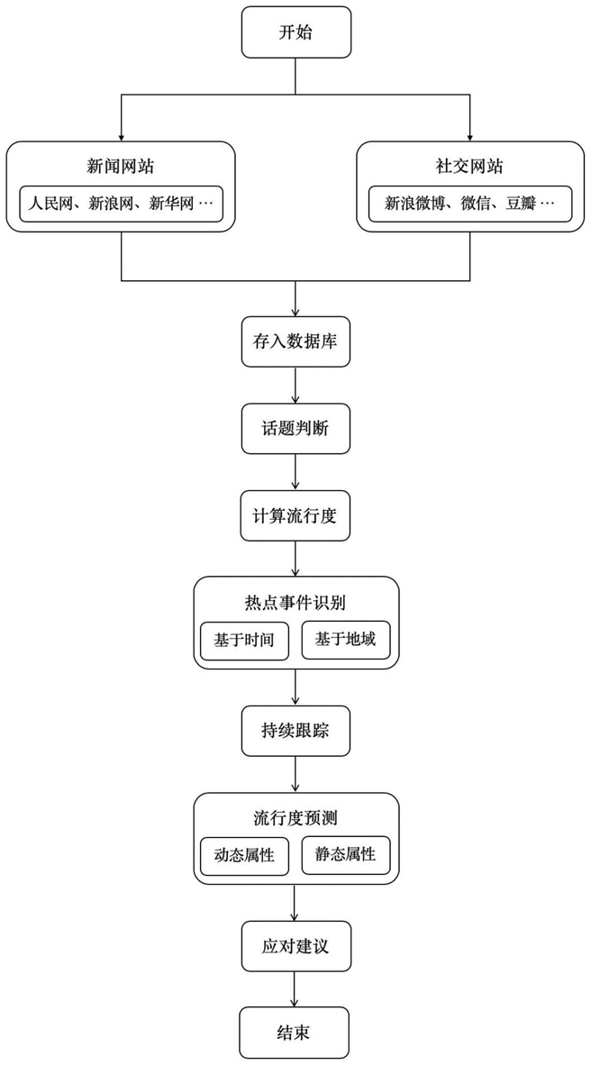 1.一种网络爱国舆情事件跟踪、预测和疏导方法,其特征在于,所述方法包括以下步骤:步骤1,建立全网数据采集系统,使用网络爬虫获取热门新闻网站和社交媒体内容,过程如下: