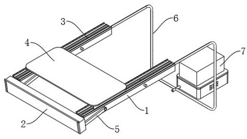 1.一种新能源汽车用多功能天窗,包括有安装条(1)和驱动双轨(3),其特征在于,所述安装条(1)固定连接在汽车车顶的钢架上,所述安装条(1)的一端设置有多功能挡板(2),所述驱动双轨(3)固定连接在安装条(1)上,所述驱动双轨(3)上连接有天窗机构(4),所述安装条(1)靠近多功能挡板(2)一侧安装有连接机构(5),所述多功能挡板(2)通过连接机构(5)与安装条(1)相连接,所述多功能挡板(2)上还连接有导风管(6),所述导风管(6)从安装条(1)内部穿过,所述导风管(6)远离多功能挡板(2)一端连接在控制器降温散热机构(7)上。