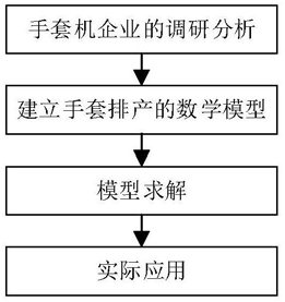 TDmik=[xijk/a]·Δt2+xijk·tij+Δt1式中a为一卷织线能织的手套个数,单位:个/卷,Δt2为手套机生产设备换一次织线的时间,tij为第i台手套机生产设备上生产每个第j类手套所需要的时间,Δt1为手套机生产设备更换花型的时间;