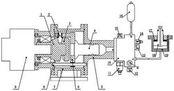 1.一种无油泵、可调频率及振幅的液压激振器,其特征在于,包括端面凸轮(1)、圆锥滚子(2)、共轭端面凸轮(3)、圆锥滚子固定爪(6)、激振器壳体(7)、导向柱(8)和伺服电机(9);