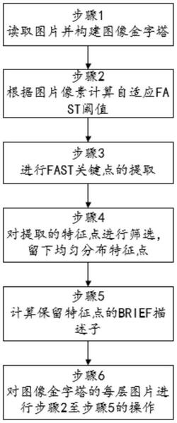 所述步骤6中对图像金字塔的每层图片进行步骤2至步骤5的操作,n幅不同比例的图像提取特征点总和作为这幅图像的特征点,这样就得到了均匀分布的特征点。