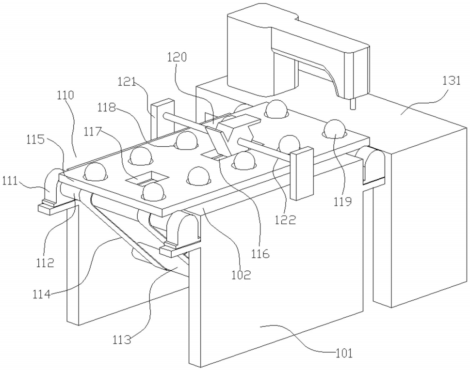 1.一种用于纸张锁线装订的切线机构,其特征在于:包括机架,机架包括两块平行设置的支撑板(101),机架上设有工作台(102);工作台(102)的两侧且位于支撑板(101)上设有升降块(121),升降块(121)之间设有第二转动杆(122),第二转动杆(122)上可转动地设有截面呈正六边形的转动块(511),转动块(511)间隔的侧面上均沿各自侧面的延伸方向设有安装槽(512);安装槽(512)内通过螺栓连接有沿安装槽(512)延伸方向设置的安装板(521),安装板(521)间隔设置且安装板(521)的端部与对应的转动块(511)间隔侧面相齐平,安安装板(521)的远离安装槽(512)的端部处设有刀片安装槽(522),刀片安装槽(522)内设有部分伸出刀片安装槽(522)的刀片(531),刀片安装槽(522)内通过螺栓连接有用于挤压刀片(531)的挤压板(532)。
