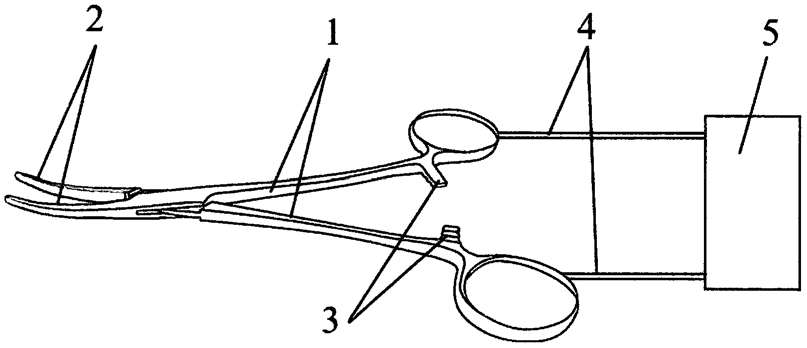 2.根据权利要求1所述的止血钳,其特征是所述导线的长度为10-50厘米。