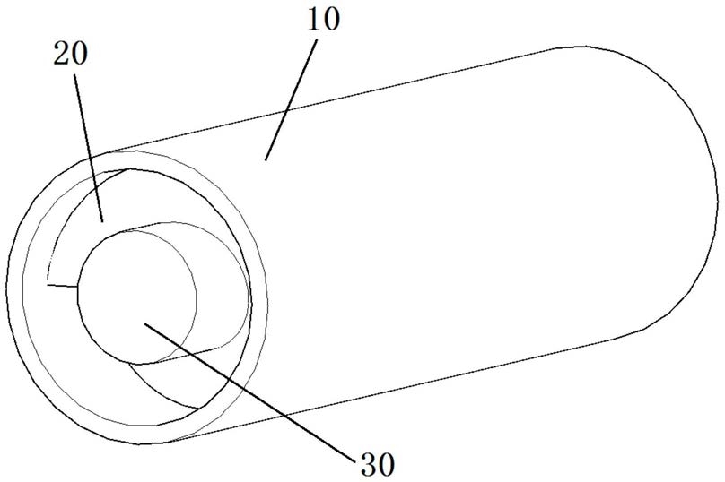 所述内轴(30)为圆柱体,其半径小于管道(10)的半径,内轴(30)通过隔板(20)设置在管道(10)内部且两者同轴;