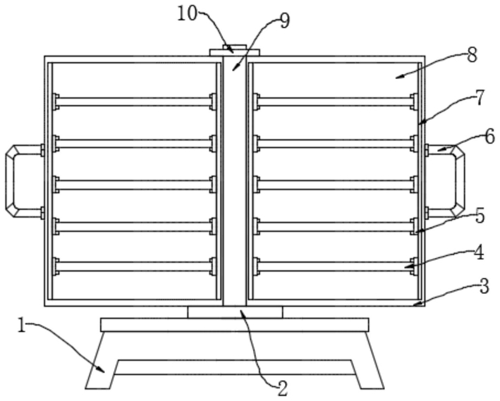2.根据权利要求1所述的一种展厅用旋转展示设备,其特征在于:所述展示框架(3)的两侧内壁上均设置有固定夹板(5),所述固定夹板(5)之间设置有承载板(4),且承载板(4)通过固定夹板(5)与展示框架(3)的内部固定连接。
