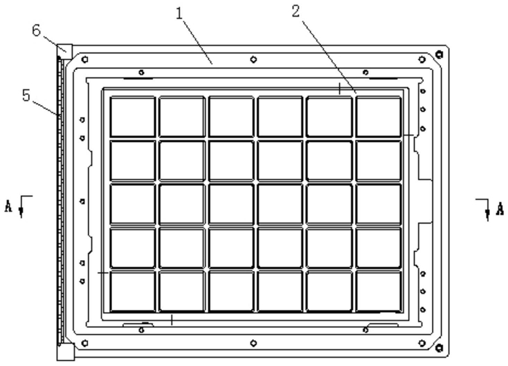 4.根据权利要求3所述的一种分区触摸屏,其特征在于,所述锁件结构包括铰接于端部的卡接板件(5)和定位卡槽(21),所述卡接板件(5)和定位卡槽(21)分设于网格板(2)和压板(3),所述卡接板件(5)包围形成端部容纳槽。