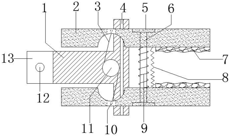 6.根据权利要求1所述的一种化妆刷用清洗夹具,其特征在于,所述夹板(2)之间固定有伸缩隔膜(8),且伸缩隔膜(8)在滑杆(6)的右侧。