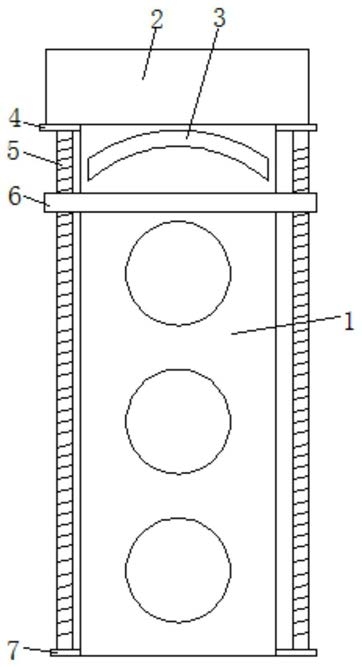 4.根据权利要求1所述的一种便于除尘的智能交通信号灯,其特征在于,所述信号灯本体(1)的顶部固定有保护罩(2),保护罩(2)罩设在伺服电机和两个螺纹柱(5)的外部。