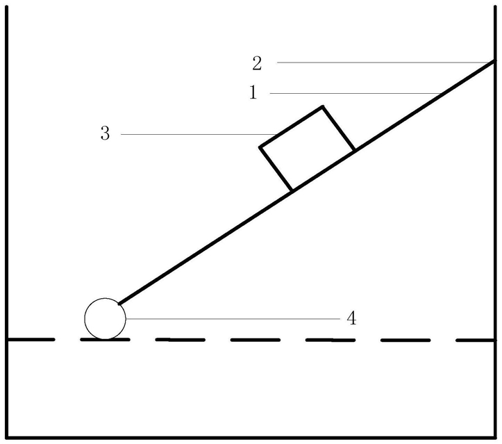 1.一种高精度液位连续测量装置,其特征在于,包括测量仪、轻质杆(1)、转动轴(2)、角度传感器(3)和浮球(4);所述轻质杆(1)的一端和浮球(4)连接,其另一端和转动轴(2)连接;所述浮球(4)设置于液面上;所述角度传感器(3)设置于轻质杆(1)上;所述角度传感器(3)和测量仪通信连接。