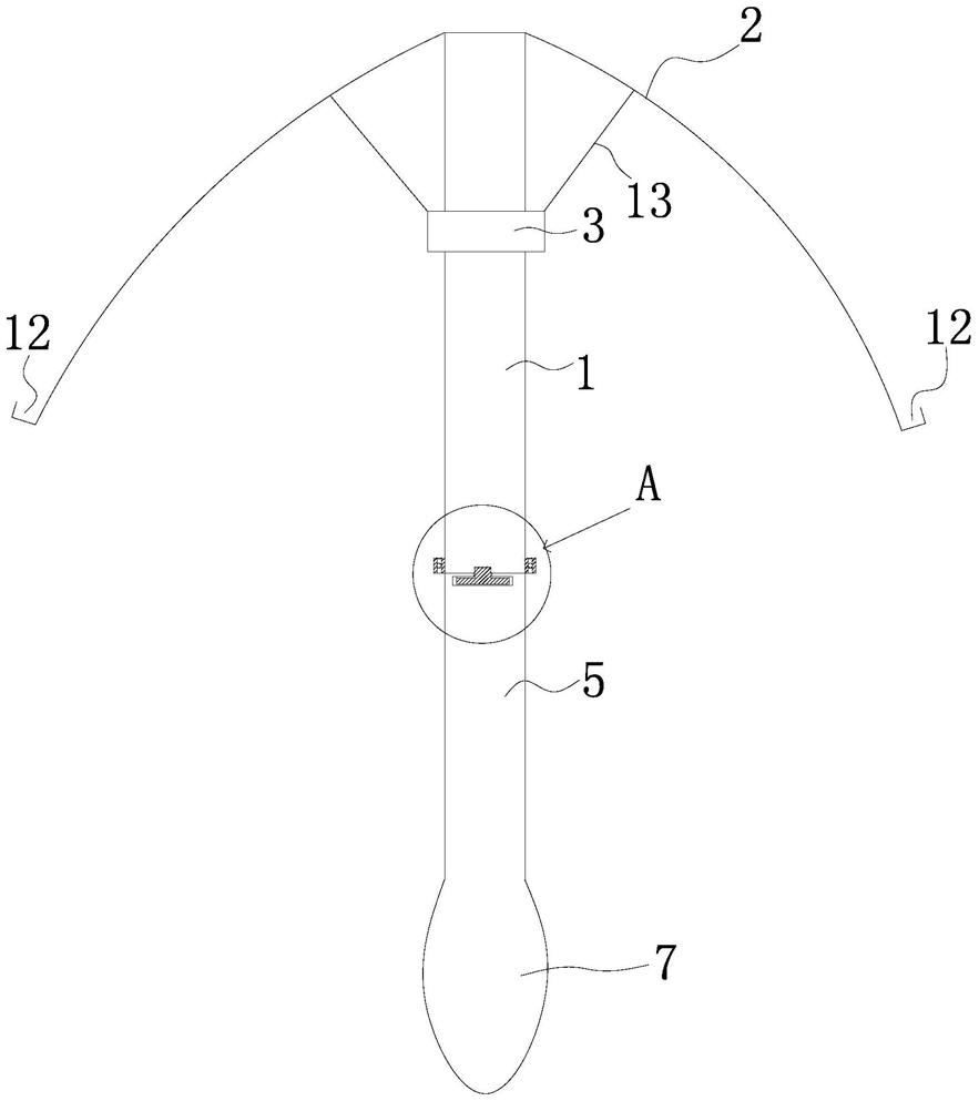 手柄杆,其上端设置有卡接环,所述卡接环与所述连接环活动卡接,所述手柄杆下端设置有手持柄,手柄杆内设置有卡合槽,所述卡合槽内活动设置有卡合块,所述卡合块上端贯穿所述手柄杆且与所述支撑杆下端固定连接。